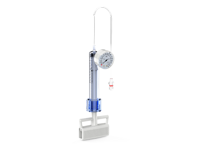 An inflation device is utilized to inflate balloons in order to dilate the vessel or insert a stent when performing Percutaneous Transluminal Coronary Angioplasty (PTCA) surgery. This procedure unclog blood vessels that are obstructed or narrowed and deploys stents to maintain arterial patency.